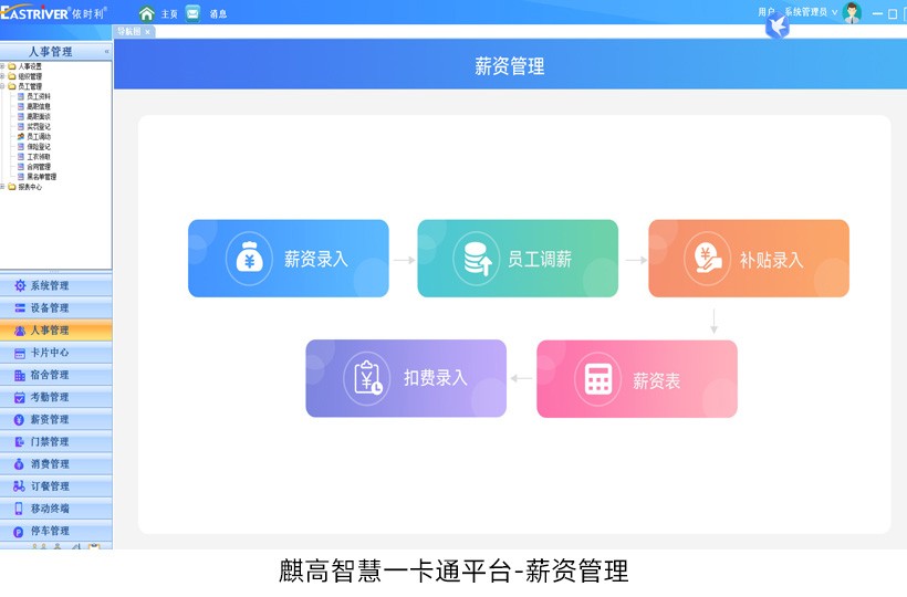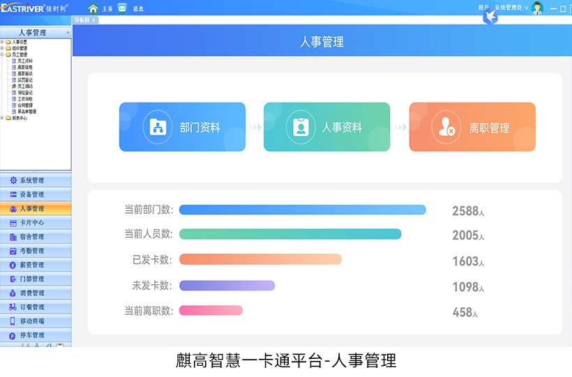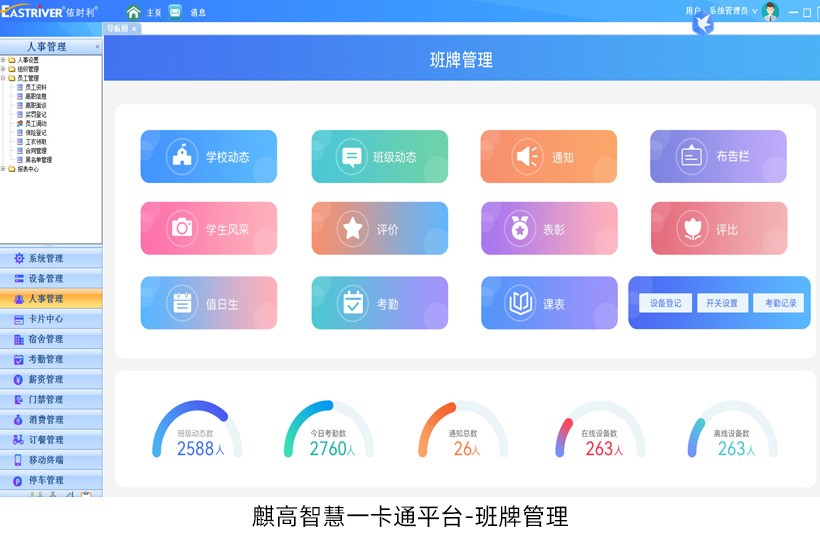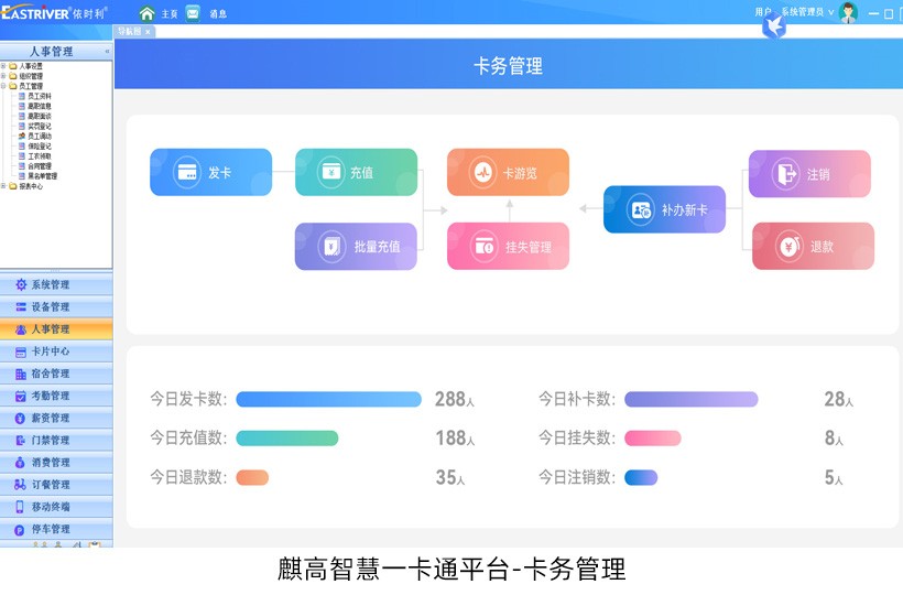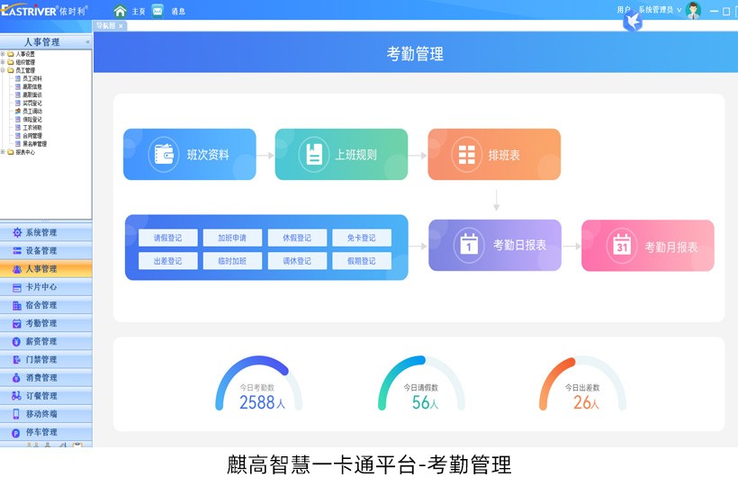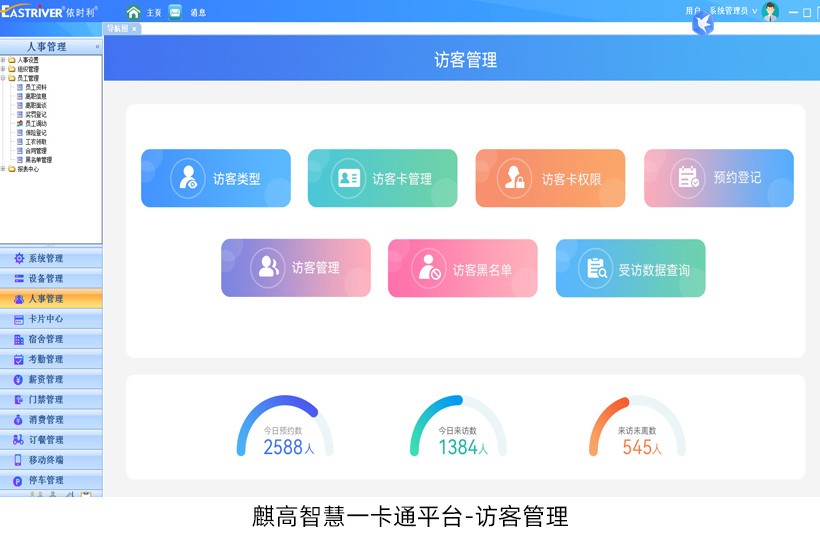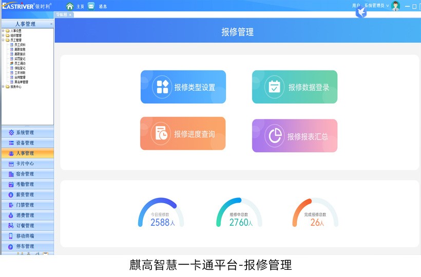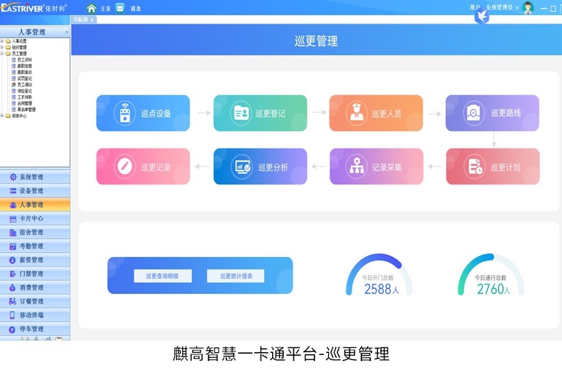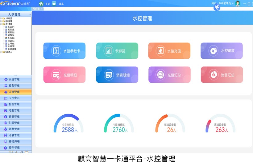 依时利《麒高智慧一卡通平台》为打造信息化提供一种快速、便捷、有效的管理手段。平台利用成熟的云计算机技术、互联网技术、通信技术,物联网技术、人脸技术、二维码技术将使用单位的众多后勤管理工作通过M1卡、CPU卡、NFC手机、二维码、人脸特征、生物识别等手段连接成为一个有机的综合体。基于CS/BS稳定架构开发,通过三层架构设计,平台支持云服务器部署,应用集团公司、多园区管理、跨国集团、多子公司的管理模式,为平台提供60个以上管理模块服务,模板应用子系统包括:人脸采集系统、宿舍管理系统、停车缴费系统、中间件接口系统、银行接口系统、人脸管理系统、考勤管理系统、电梯管理系统、门禁管理系统、消费管理系统、订餐管理系统、加密管理系统、卡务管理系统、通道管理系统、LED发布管理系统、行为分析系统、水控管理系统、电控管理系统、停车管理系统、无线门锁系统、微信访客系统、人证管理系统、自助机管理系统、校讯管理系统、班牌管理系统、信息发布系统、校讯定位系统、视觉餐台系统、薪资管理系统、人事管理系统、终端管理系统、数据分析系统、称重管理系统、会议预约系统、健康管理系统、指纹管理系统、充电桩管理系统、新能源充电系统、报修管理系统、巡更管理系统、彩屏发布管理系统、缴费管理系统、球场预约系统、车位引导系统、培训管理系统、绩效管理系统、晚归推送系统、洗衣控制系统、饮水控制系统、远程抄表系统、收银结算系统、自助保温取餐系统、外卖订餐系统、车辆接送系统、联动报警系统、WEB查询系统、工衣领取系统、车辆定位系统、人员定位系统、图书管理系统等。