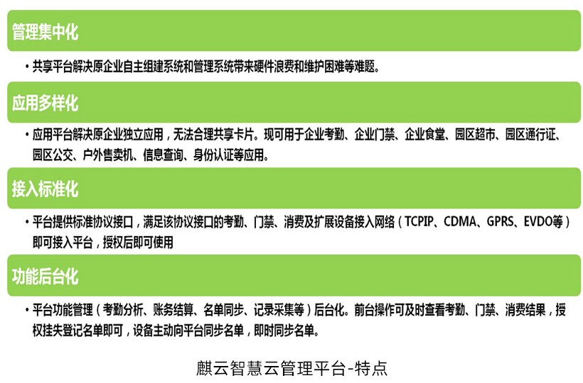 平台支持多操作系统平台部署(Windows、Linux ),支持多种数据库( MSSQL2012、MSSQL2016等主流数据库),平台采用B/S和C/S相结合的模式,卡务管理采用C/S模式有效保证安全性和实时性,支持多种浏览器(IE、火狐、傲游等主流浏览器),支持多厂家硬件设备接入(按照平台接入协议实现通信即可),终端设备采用主动上传,通讯前置服务为服务端,接入简易,实时性强。