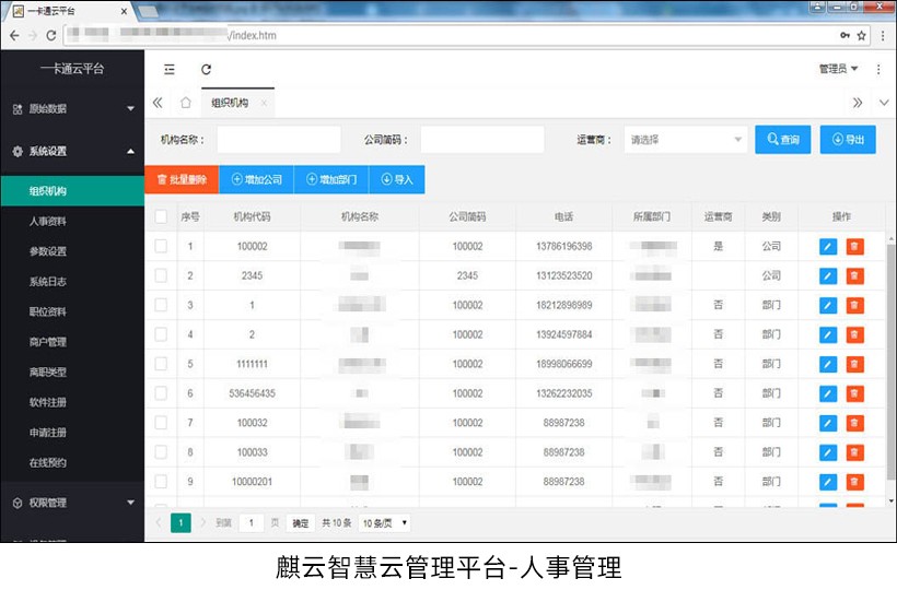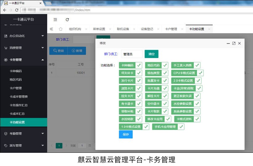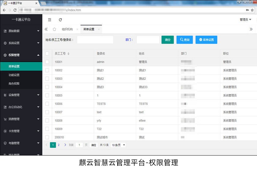 纯B/S架构设计,将传统独立一卡通平台共享化,打造省/市级一卡通应用平台,多集团、多园区、多学校全国统一化管理。平台集考勤、人脸、消费、门禁、通道、停车、派车、巡更、防疫等应用模块于一体,共享人事部门资料、卡务信息、权限管理、终端管理等公用模块。