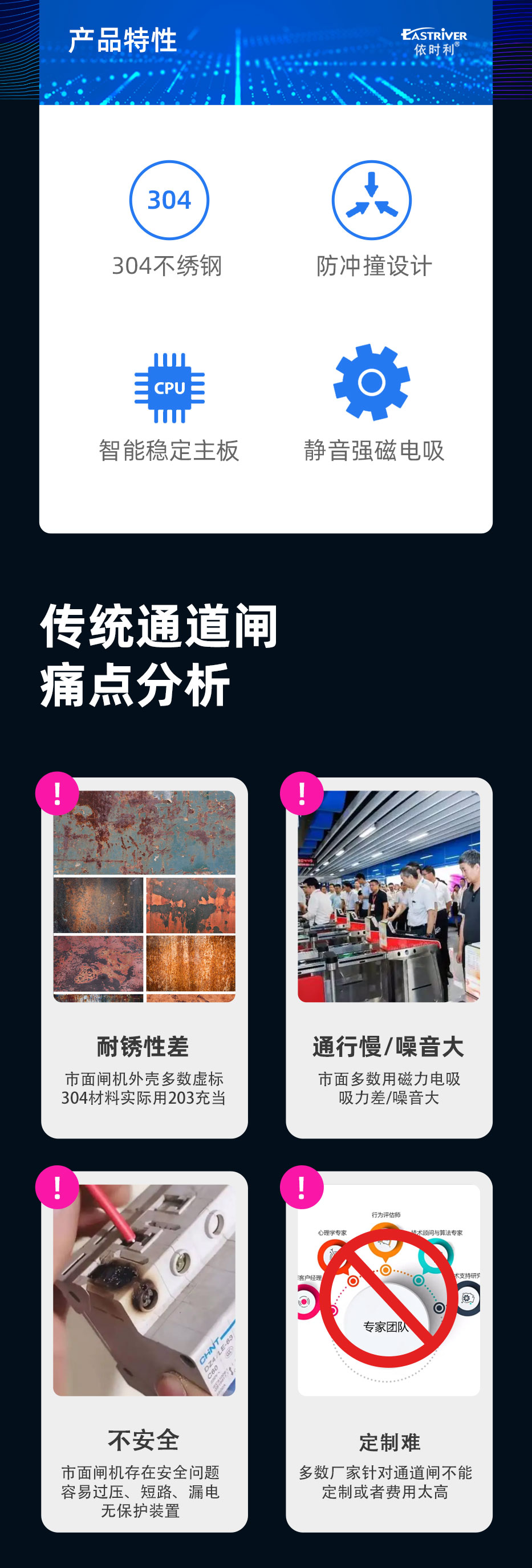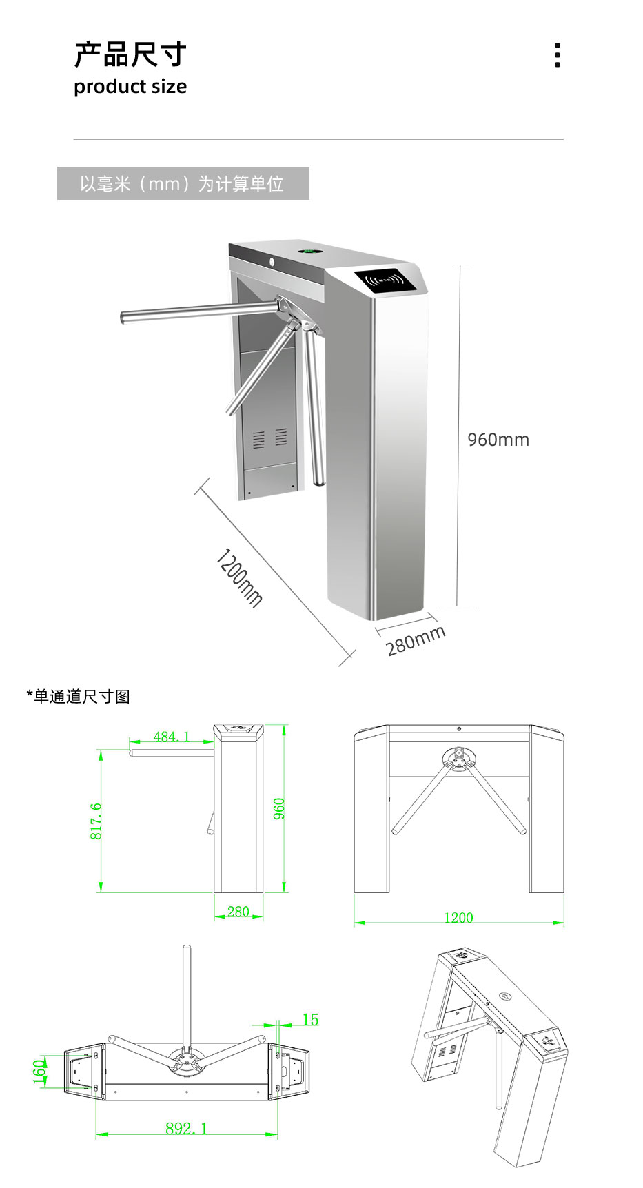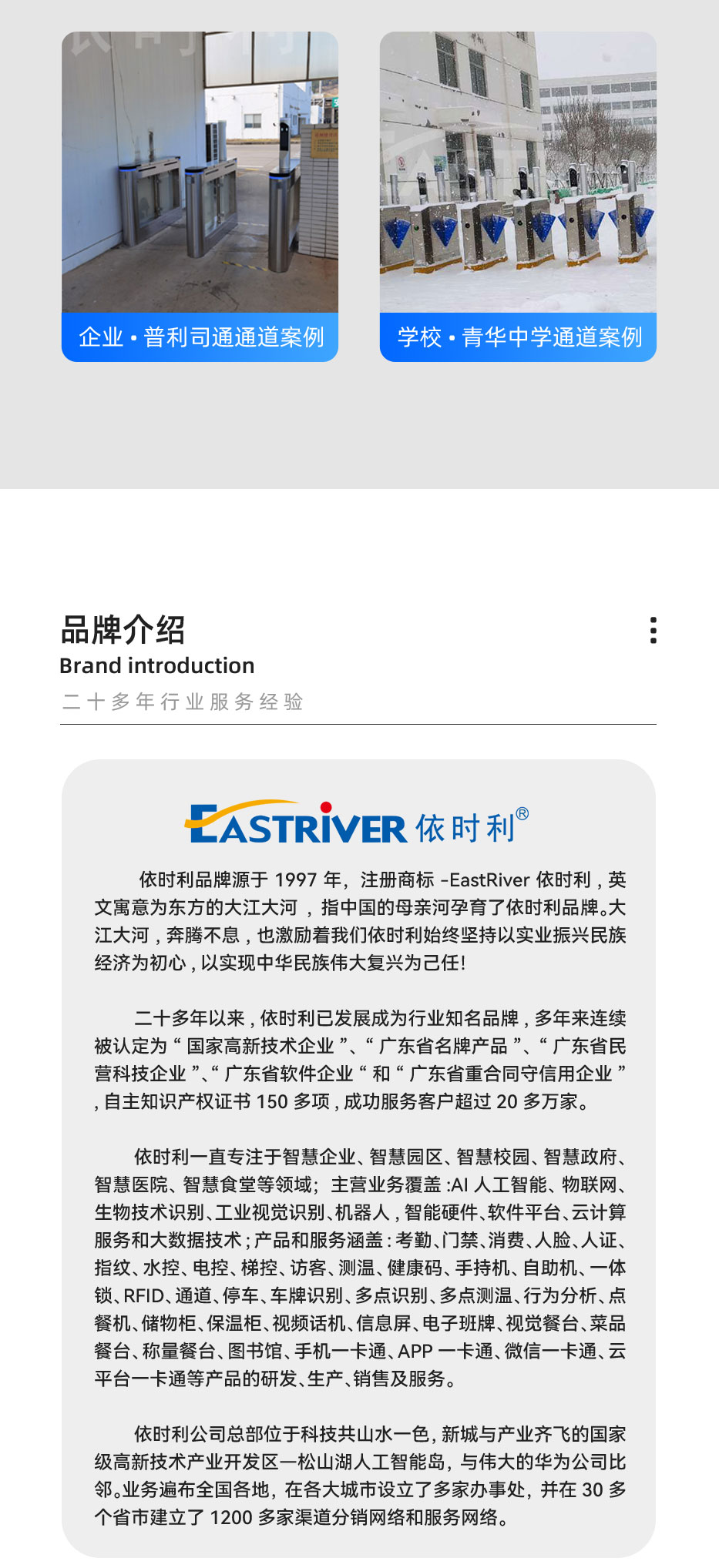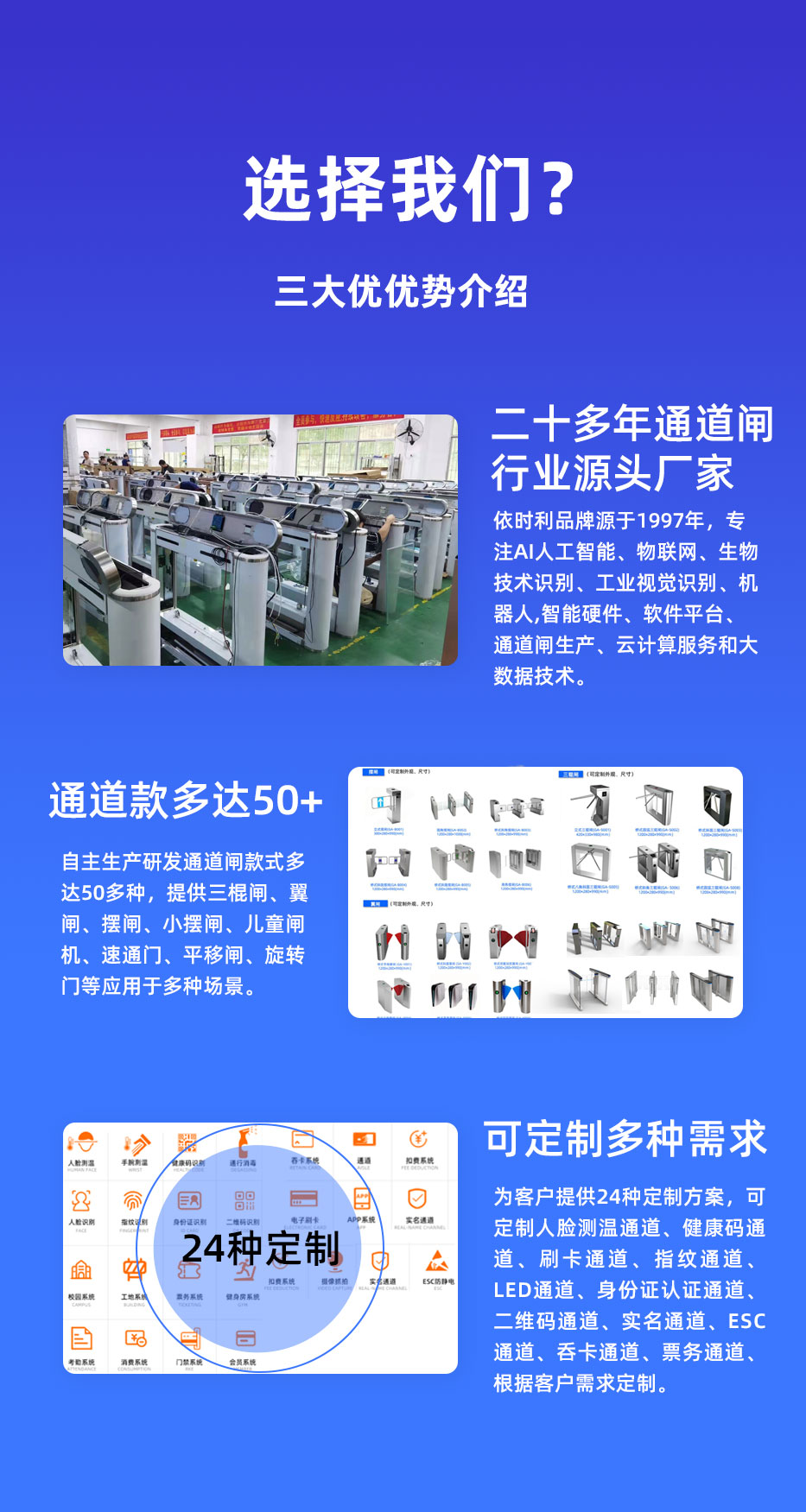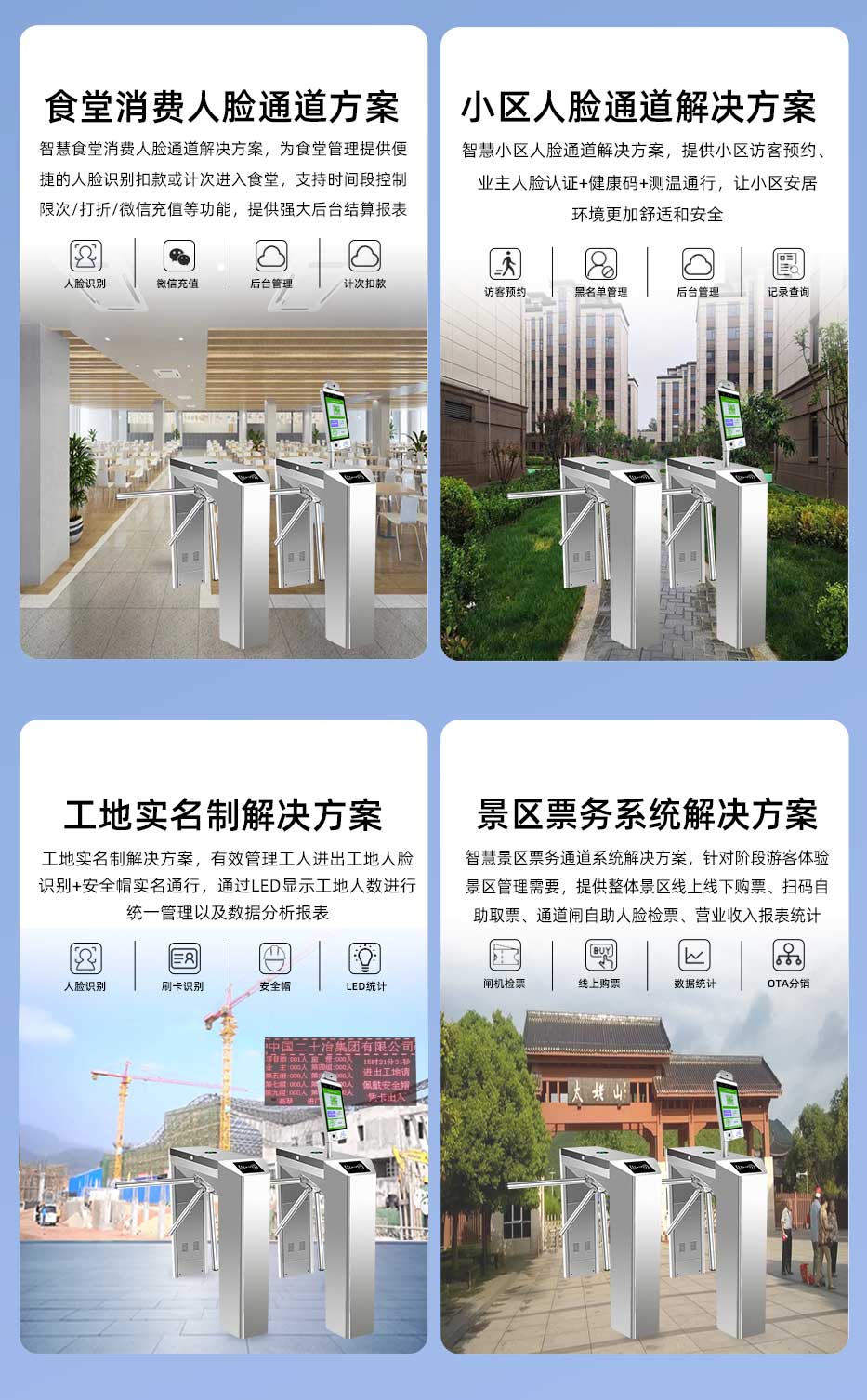 智能桥式三辊闸TJTD系列是依时利品牌,依时利公司自主研发的机芯控制一体化智能通道终端产品,采用304不锈钢材料,配合静电高速电机,具有防水、防尘、防潮、防雷、通行快、噪音小、寿命长、可定制等特点。可用于人脸识别通道闸机、人脸测温通道闸机、健康码测温通道闸机、企业人行通道、企业宿舍人行通道、测温人脸通道、校园大门人脸通道、校园宿舍人行通道、园区人行通道、工厂考勤人行通道、食堂消费人脸通道、车站高铁人行通道、工地LED通道、景区验票通道、社区小区人脸识别通道等应用场景, 使客户的管理更高效、更智能、更省心。