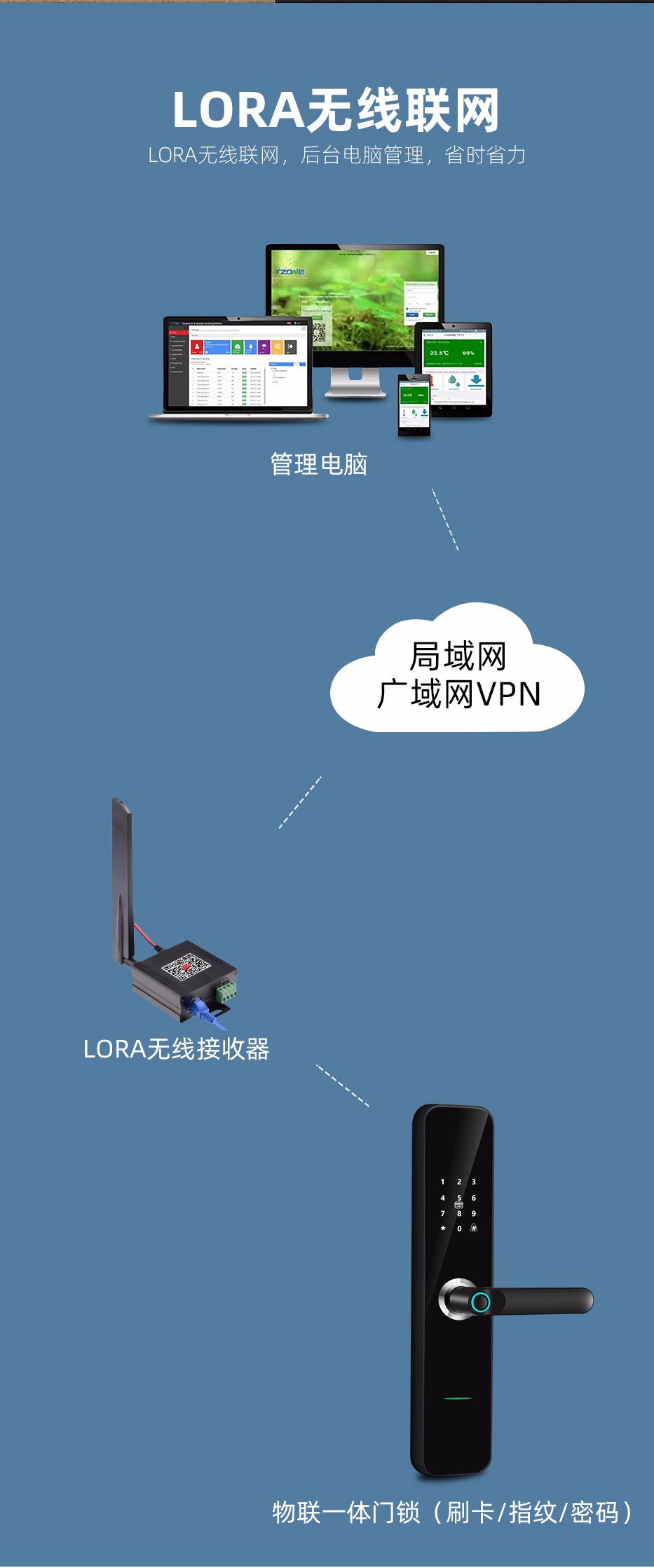 物联网一体门锁ER-LORAZW系列是依时利品牌,自主研发生产的新一代无线智能门锁终端产品,采用工业级Liux系统、LORA超低功率无线通信技术,多种开锁方式、国际一流工业设计标准,追求极致品质,具有通信稳定、传输速度快、使用时间长、外观时尚精美等特点。可用于企业宿舍门锁进出、学校宿舍门锁进出、政府宿舍门锁进出、写字楼宿舍门锁进出、洒店入住门锁进出等应用场景, 使客户的管理更高效、更智能、更省心。