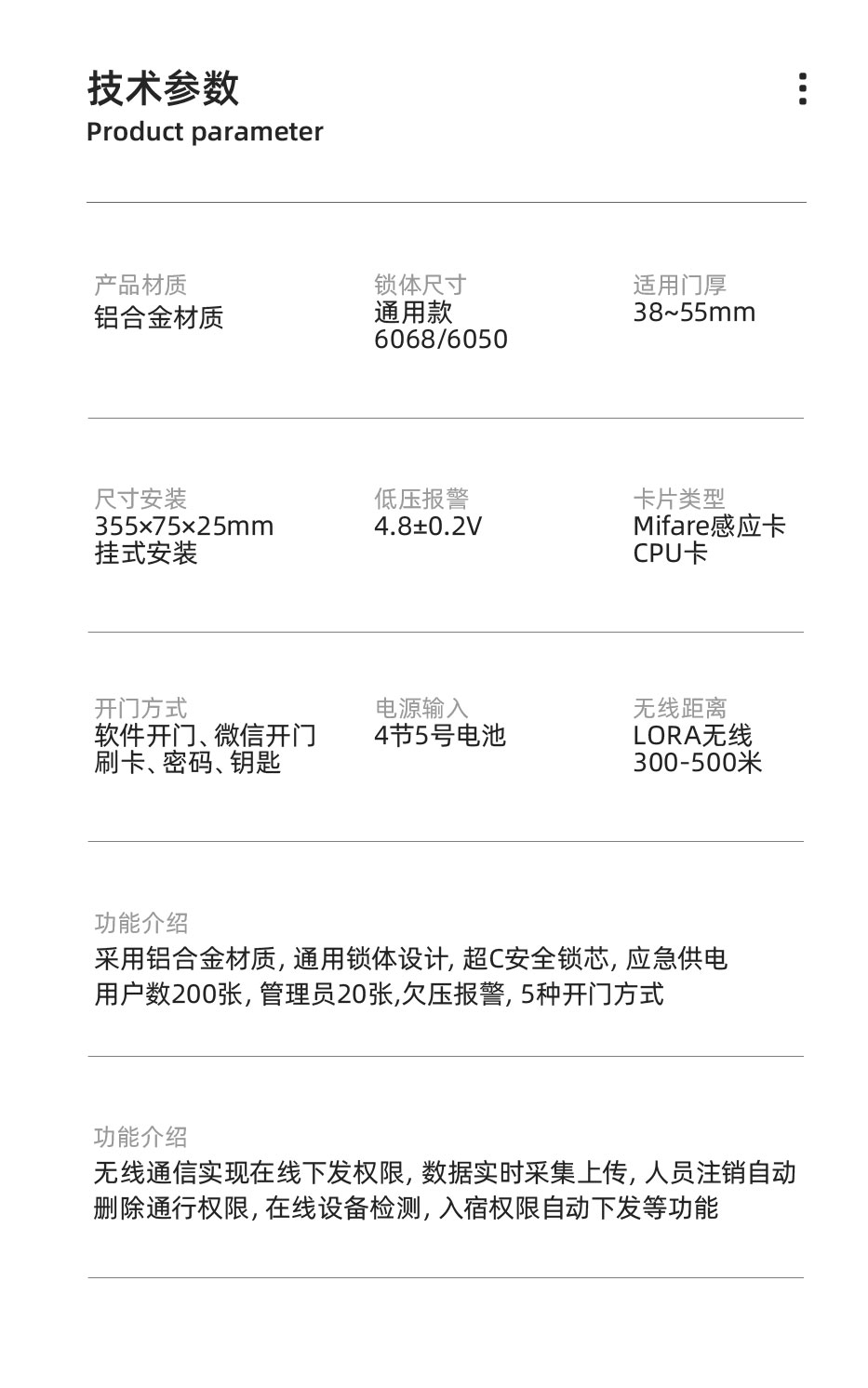 物联网一体门锁ER-LORASKMM系列是依时利品牌,自主研发生产的新一代无线智能门锁终端产品,采用工业级Liux系统、LORA超低功率无线通信技术,多种开锁方式、国际一流工业设计标准,追求极致品质,具有通信稳定、传输速度快、使用时间长、外观时尚精美等特点。可用于企业宿舍门锁进出、学校宿舍门锁进出、政府宿舍门锁进出、写字楼宿舍门锁进出、洒店入住门锁进出等应用场景, 使客户的管理更高效、更智能、更省心。