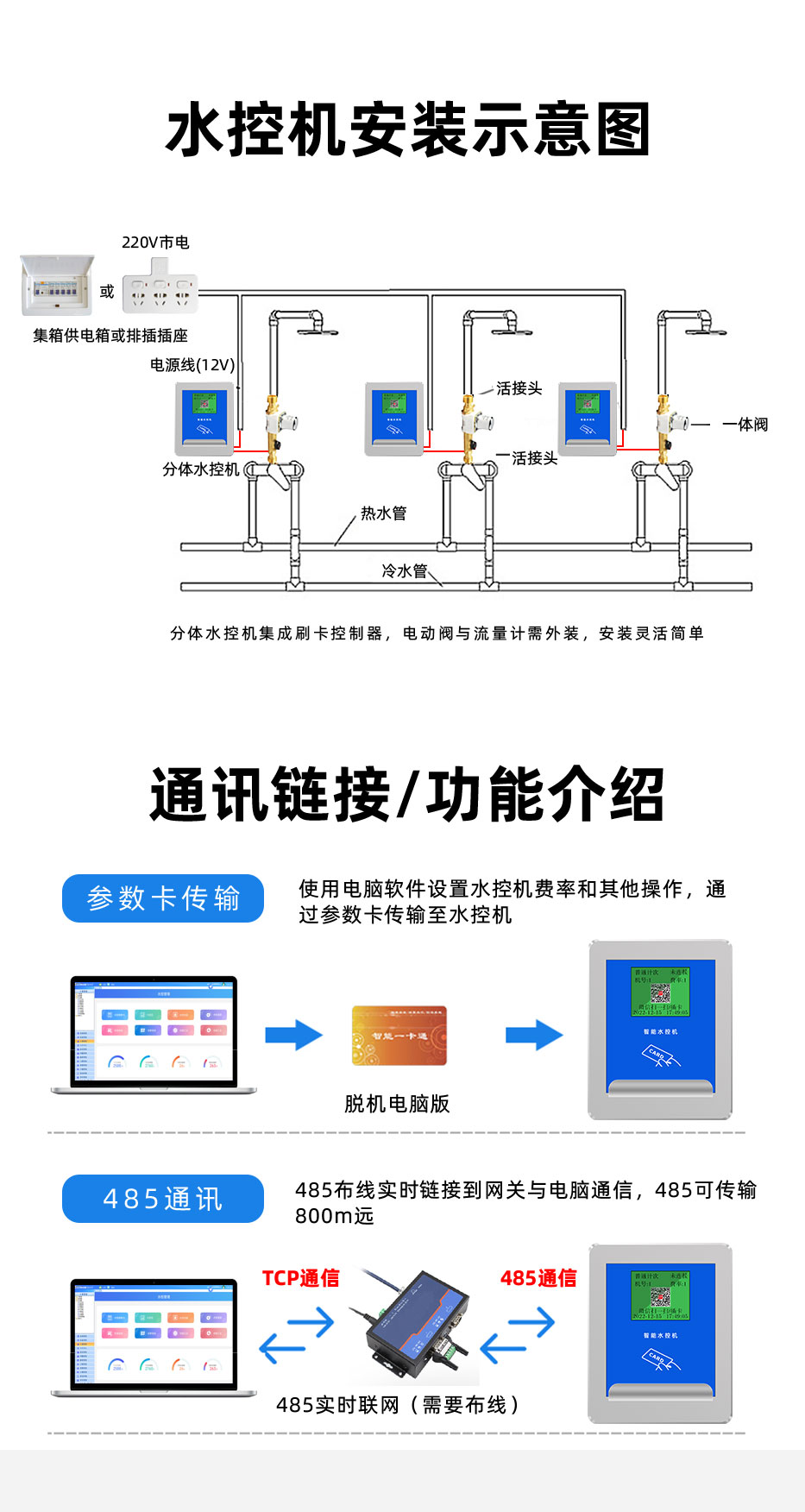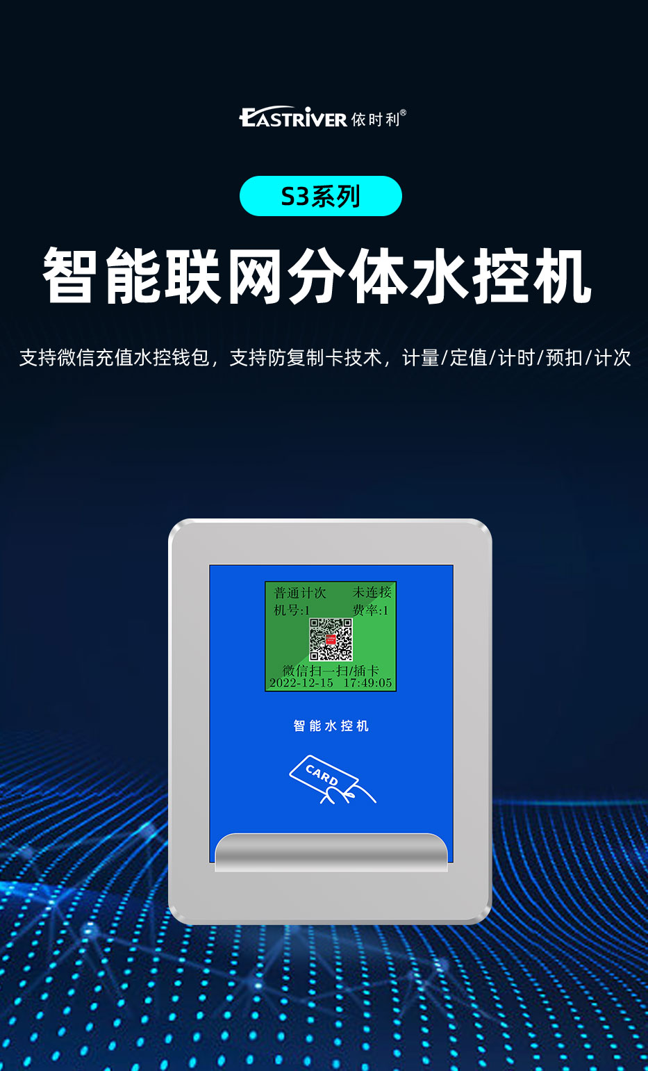 智能联网分体水控机S3系列是依时利品牌,自主研发生产的新一代节能水控智能终端产品,采用分体式设计,应用安装更广,配合高速处理器的结合,国际一流工业设计标准,追求极致品质,具有计量收费、定值收费、计时收费、计次限量、预扣收费等功能。可用于校园浴室、企业/园区澡堂、饮水机控制、公共浴室、酒店、健身房、出租屋等应用场景, 使客户的管理更高效、更智能、更省心。
