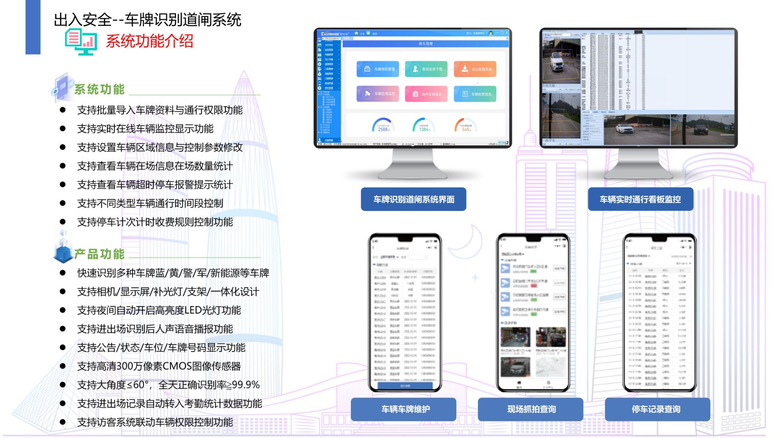 依时利企业/校园车牌识别道闸系统是通过统一管理平台/数据库/终端/手机端来实现综合管理,主要对车辆车牌号码进行识别,识别合法的进行开闸,提高企业/校园车辆停车安全管理,对各种车辆实时严格的控制进出口,并对各类车辆进行登记和识别。实现车辆管理工作的智能化,准确地监测和管控。车辆可无障碍出入停车区域,系统具备自动对比黑名单车牌,自动报警,为企业/校园车辆安全管理提供了一种崭新的安全模式。