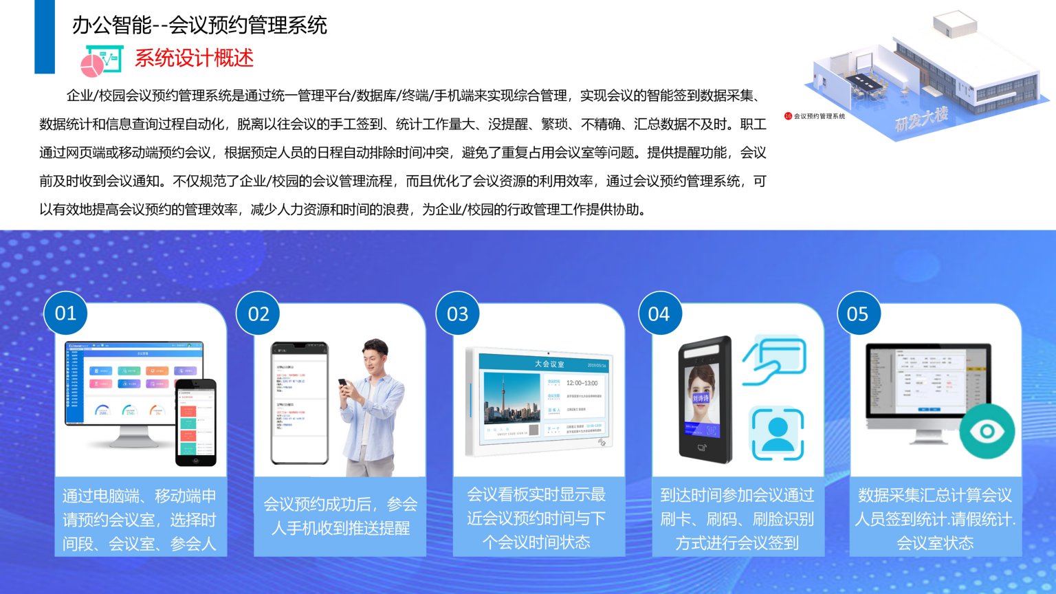 依时利企业/校园会议预约管理系统是通过统一管理平台/数据库/终端/手机端来实现综合管理,实现会议的智能签到数据采集、数据统计和信息查询过程自动化,脱离以往会议的手工签到、统计工作量大、没提醒、繁琐、不精确、汇总数据不及时。职工通过网页端或移动端预约会议,根据预定人员的日程自动排除时间冲突,避免了重复占用会议室等问题。提供提醒功能,会议前及时收到会议通知。不仅规范了企业/校园的会议管理流程,而且优化了会议资源的利用效率,通过会议预约管理系统,可以有效地提高会议预约的管理效率,减少人力资源和时间的浪费,为企业/校园的行政管理工作提供协助。