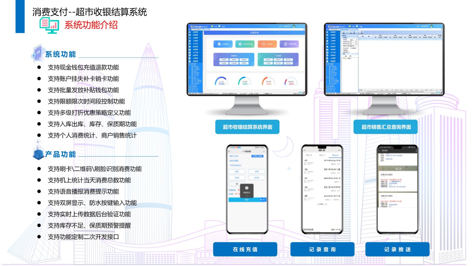 依时利企业/校园超市收银结算系统是通过统一管理平台/数据库/终端/手机端来实现综合管理,是一种可以帮助超市进行商品销售、入库出库管理、库存统计预警等功能的系统,需要配合收银机、扫码枪、打印机等设备使用,可以快速完成顾客的结算,提高收银效率,减少排队时间。支持多种支付方式,如现金、刷卡、扫码、刷脸等,满足不同顾客的需求,可以实时监控商品的库存与保质期情况,避免缺货或积压情况,可以生成各种报表,方便超市分析营业情况和制定策略。